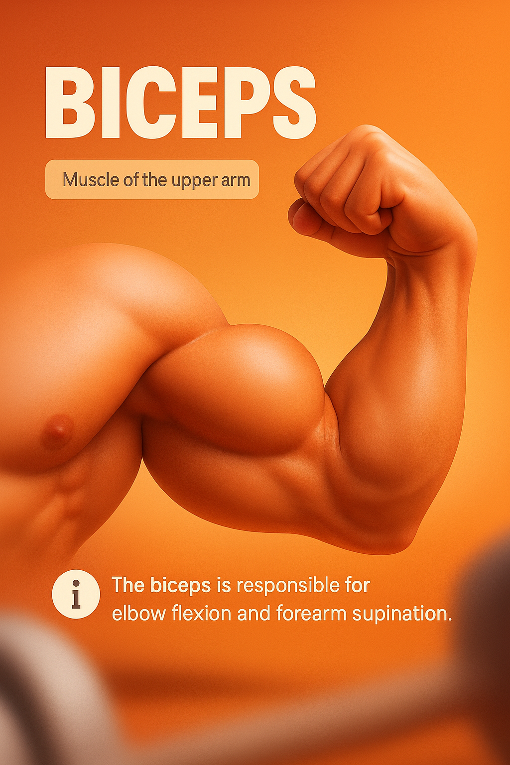 /Collection: /by davooda/Type: PNG/This infographic highlights the biceps muscle, showcasing its anatomy and function. It features a muscular arm with a focus on educational content for fitness enthusiasts.