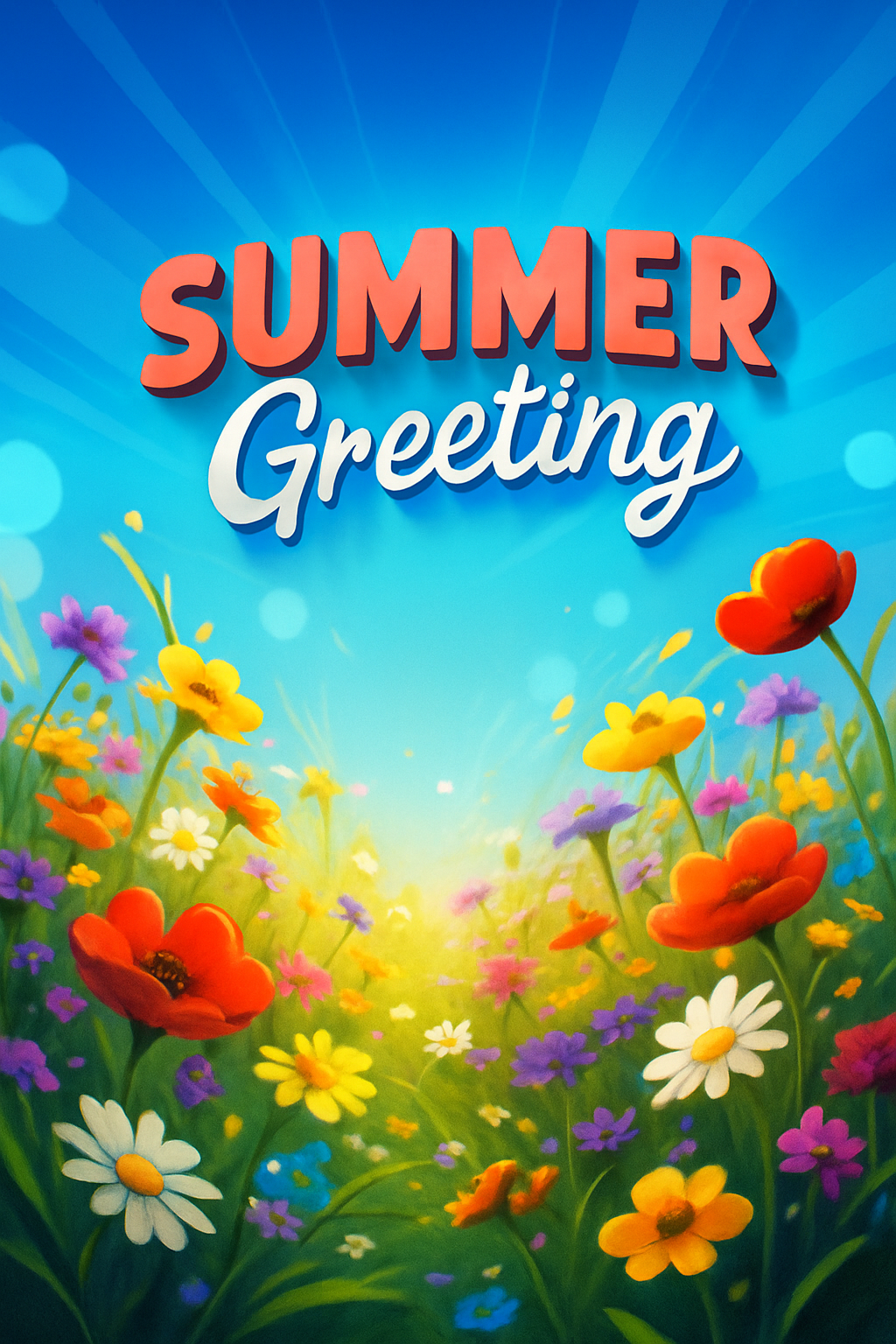 /Collection: /by davooda/Type: PNG/A dynamic summer scene featuring a vibrant meadow filled with colorful wildflowers, illuminated by sunbeams and adorned with bokeh lights, creating a cheerful atmosphere.