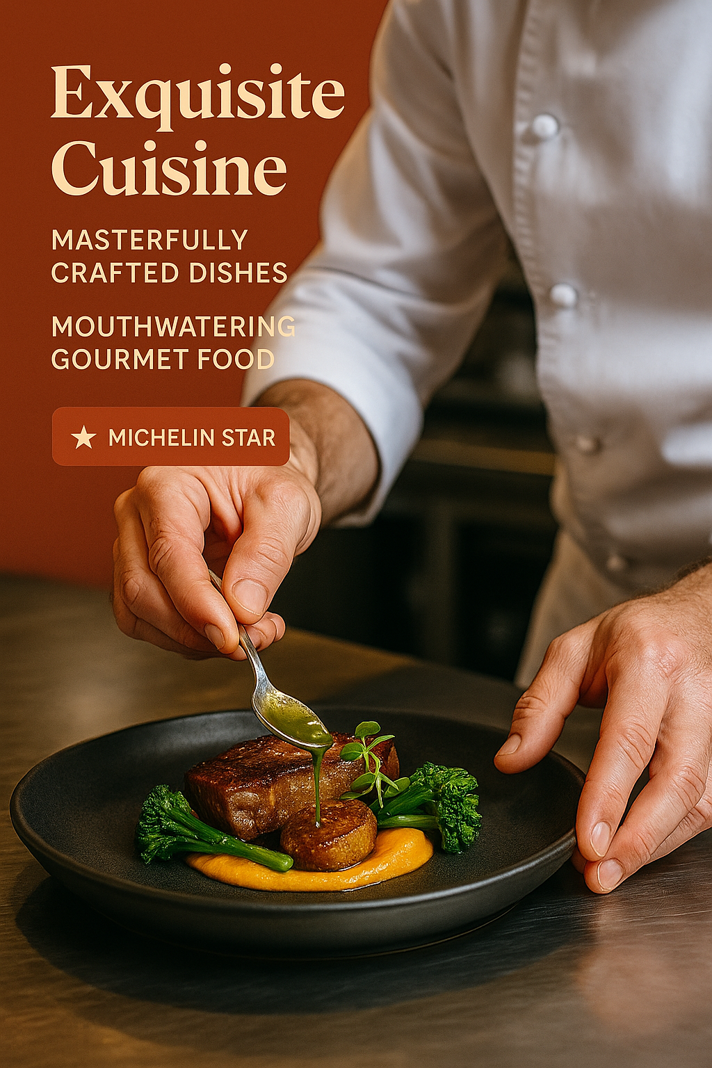 Gourmet Cuisine Promotional Image with Chef's Hands