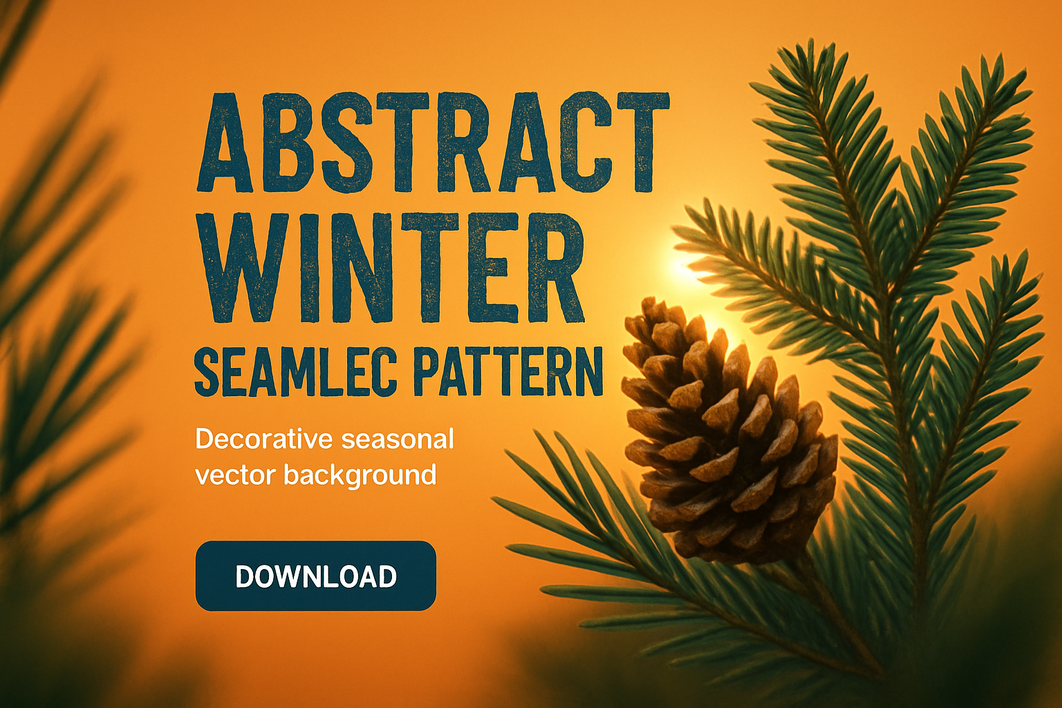 This image features an abstract winter-themed seamless pattern with a pine cone and evergreen branches, ideal for seasonal decor or design projects.