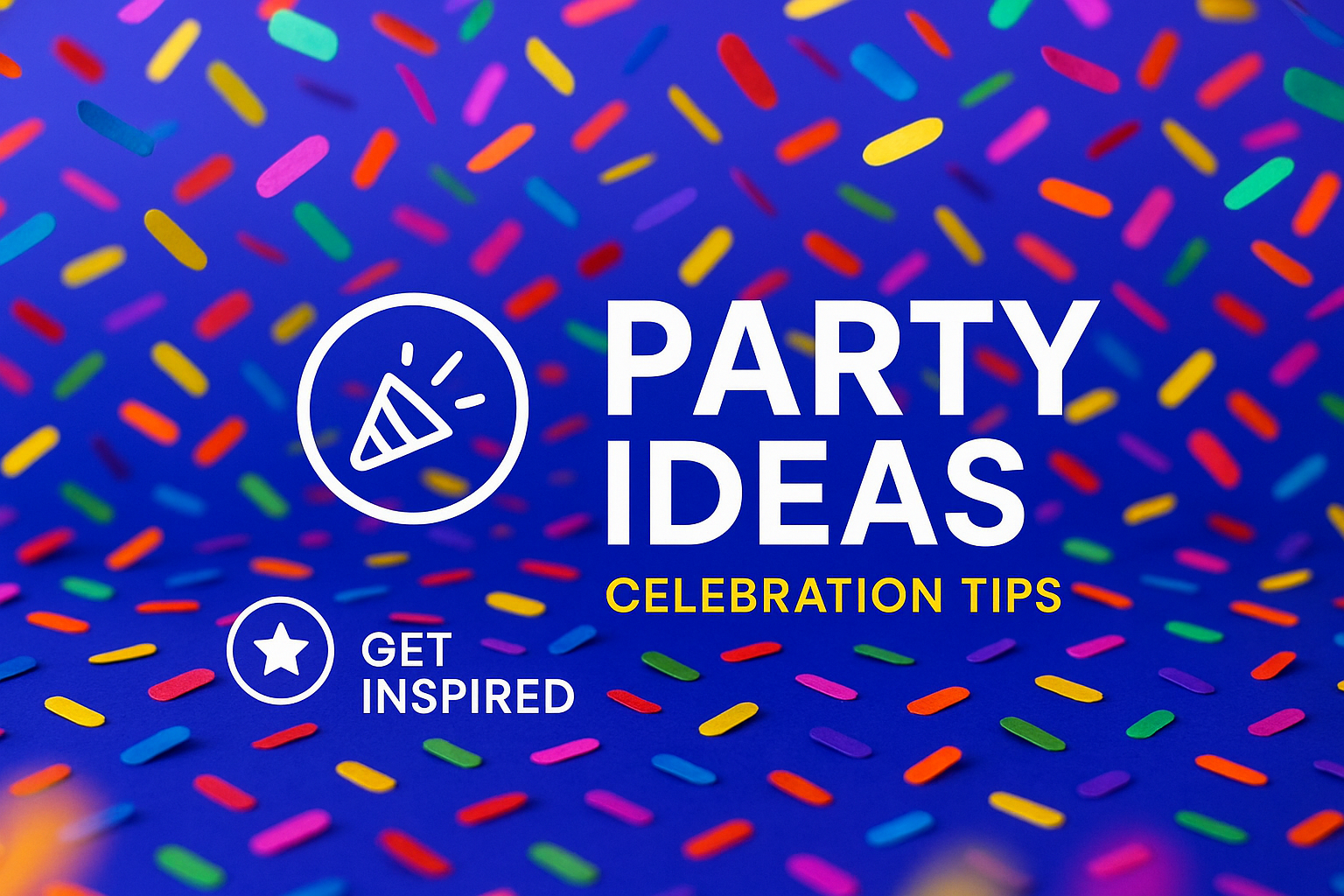 Fun and colorful graphic featuring party ideas and celebration tips, designed to inspire creativity for event planning. Ideal for social media or blogs.