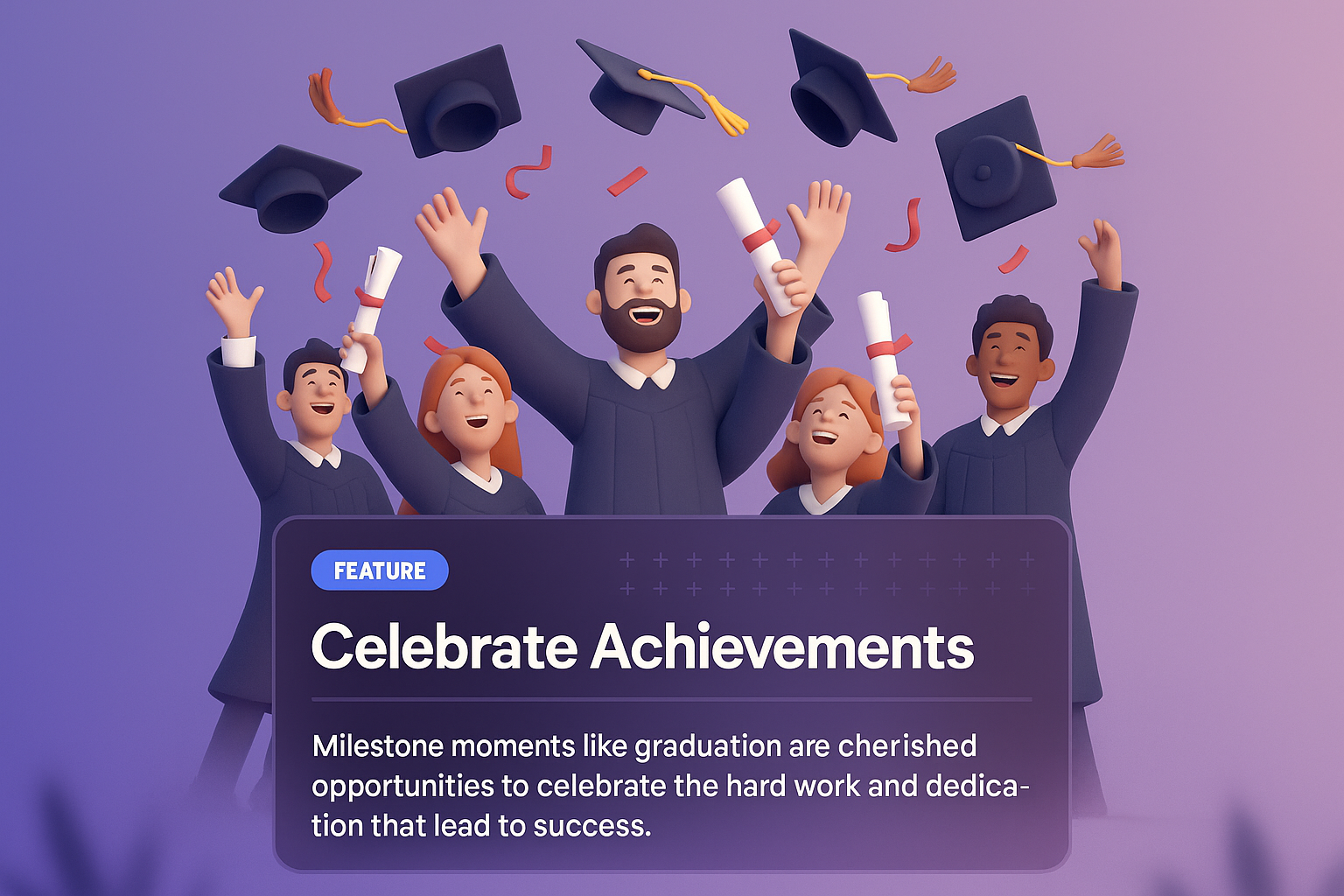 /Collection: /by davooda/Type: PNG/A vibrant illustration depicting students joyfully tossing graduation hats in the air, celebrating their achievements with diplomas in hand. The scene conveys a sense of accomplishment and excitement.