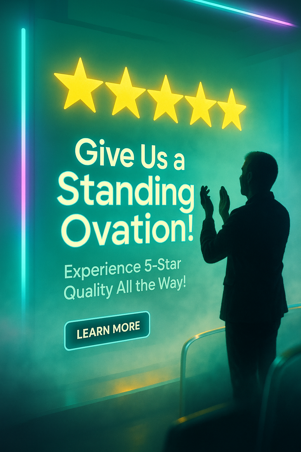 Promotional Banner for 5-Star Experience with Applauding Silhouette