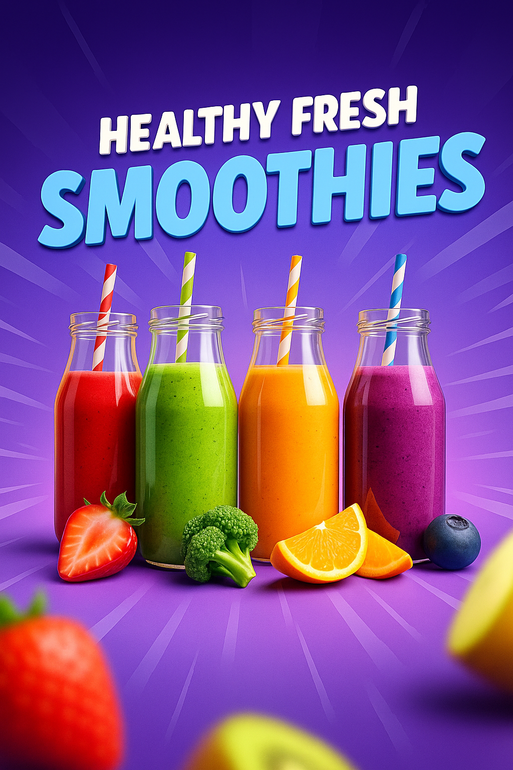 /Collection: /by davooda/Type: PNG/A dynamic lineup of colorful fruit and vegetable smoothies served in glass bottles with straws. The vibrant colors and fresh ingredients create an appetizing visual.