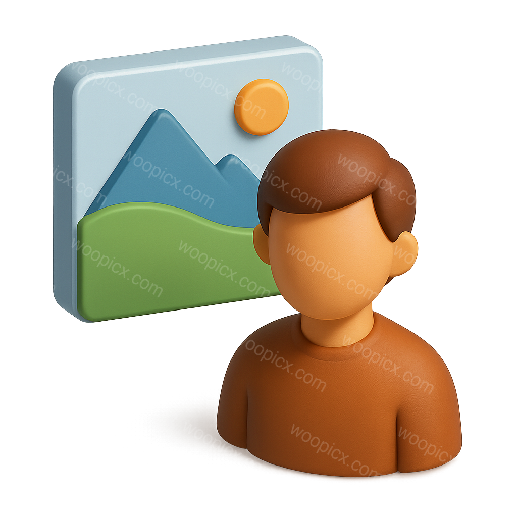/Premium/Collection: /by davooda/Type: PNG/A vibrant 3D isometric icon featuring a stylized person alongside a landscape with mountains and a sun. The design is colorful and has a volumetric feel, set against a transparent background.