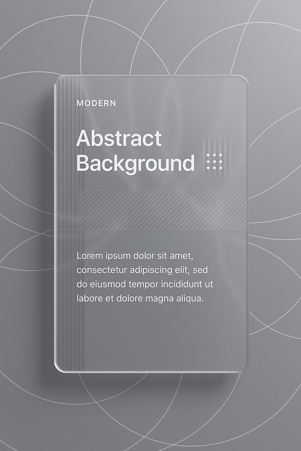 /Collection: /by davooda/Type: PNG/A modern abstract background featuring grey tones and white circular lines. The design includes a transparent block with text and patterns, creating a sleek, minimalistic look.