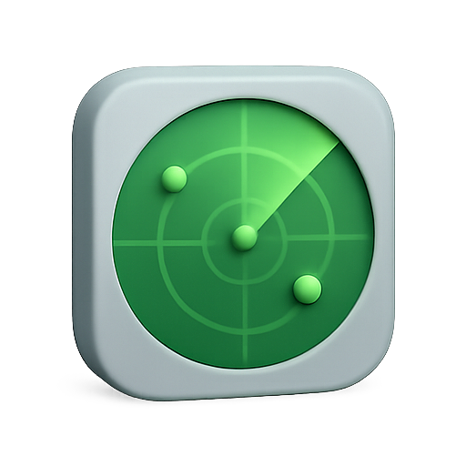 Modern radar icon featuring a circular design with a green color scheme, suitable for tech or navigation applications. The clean lines and simplicity make it ideal for digital interfaces.