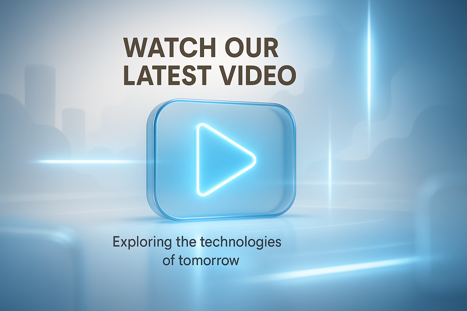 Modern promotional graphic featuring a translucent play button and a sleek background, ideal for encouraging viewers to watch the latest video content.