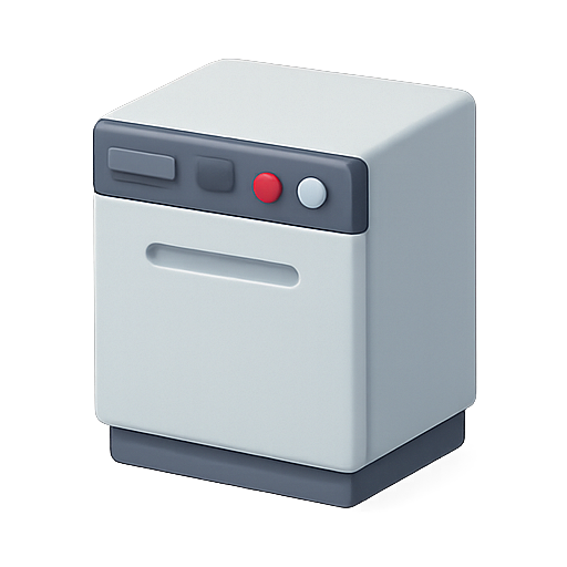 A minimalist graphic representation of a dishwasher, featuring simple shapes and a clean color palette. Ideal for use in app interfaces, websites, or digital designs related to home appliances.