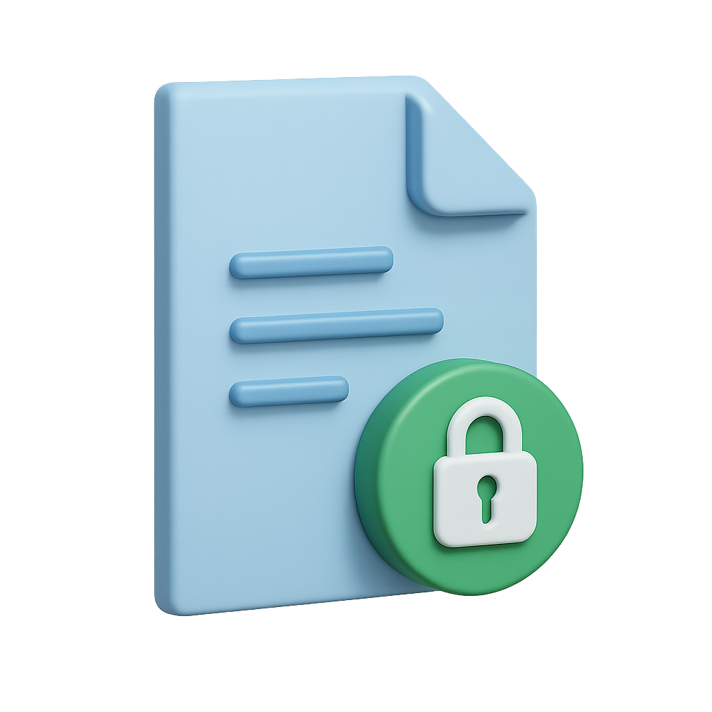 3D Icon of a Document with Shield Symbolizing Security