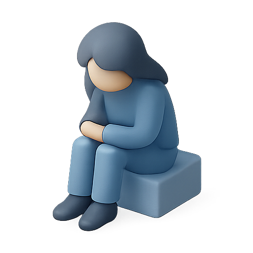 /Collection: /by davooda/Type: PNG/A minimalist 3D illustration depicting a seated figure in a thoughtful pose, conveying emotion and introspection. Ideal for mental health and wellness themes.