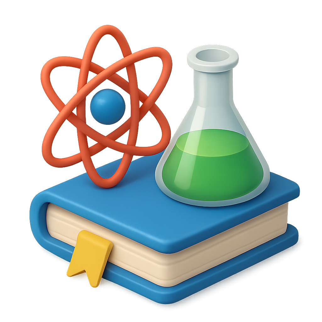 Colorful 3D Science Icon Featuring a Book and Laboratory Equipment