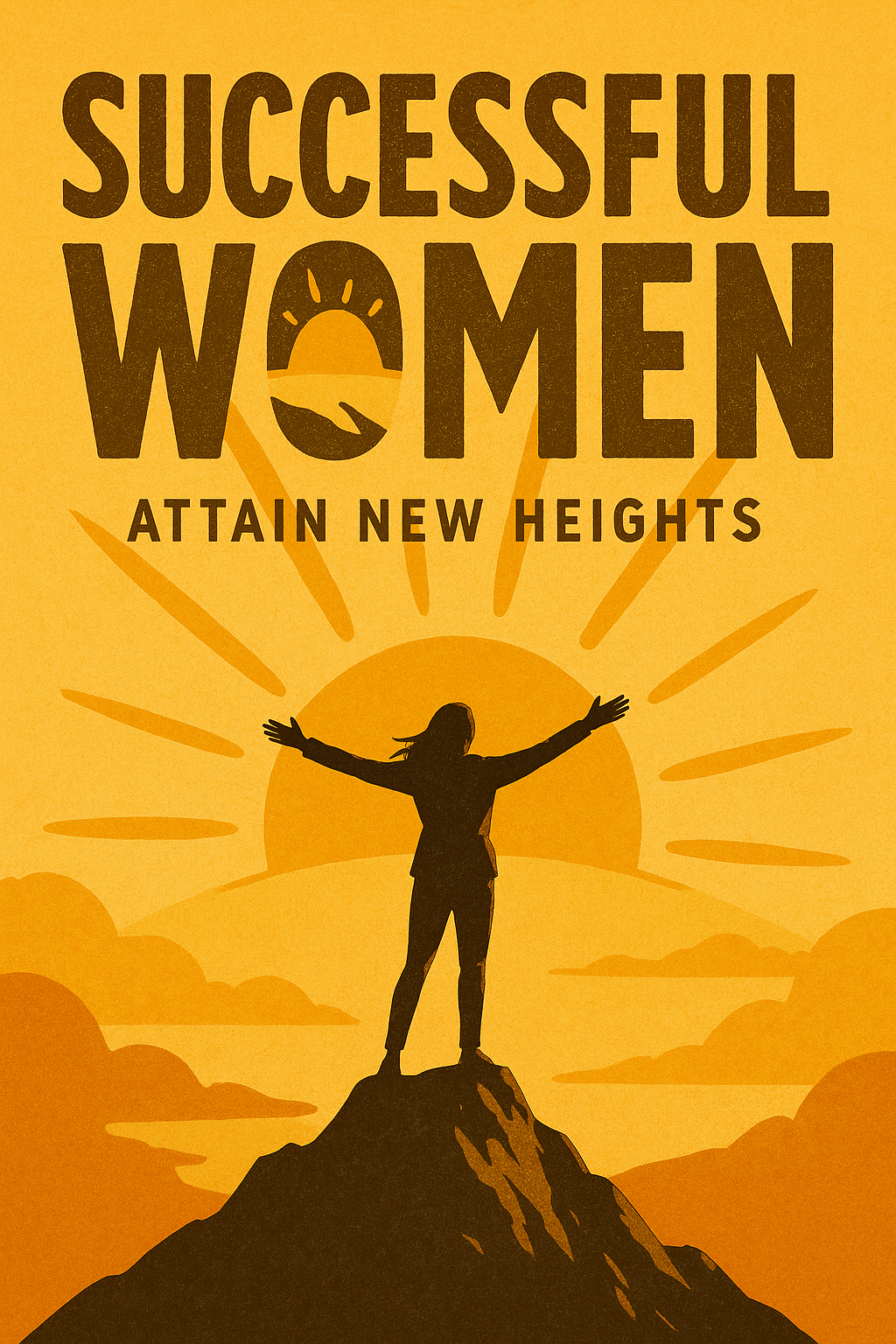/Collection: /by davooda/Type: PNG/Vibrant poster design featuring a silhouette of a woman on a mountain peak, symbolizing empowerment and achievement. Ideal for motivational campaigns and women-focused events.