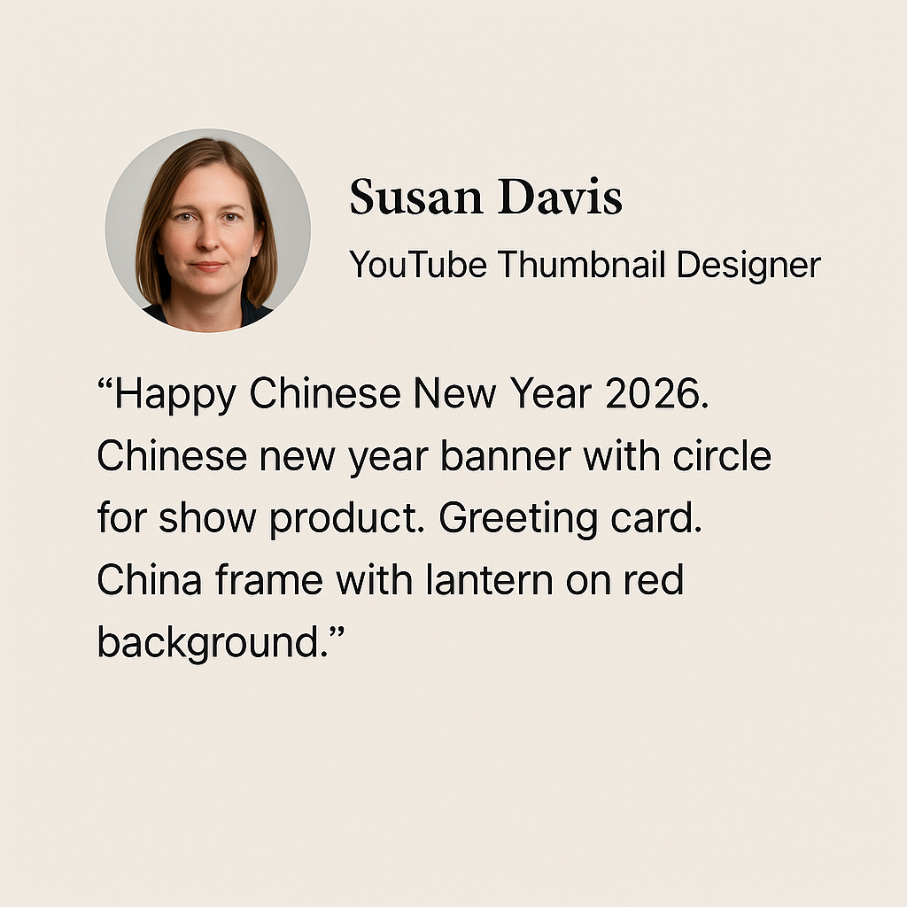 /Collection: /by davooda/Type: PNG/A testimonial from Susan Davis, a YouTube Thumbnail Designer, celebrating Chinese New Year 2026 with a focus on design elements for greeting cards.
