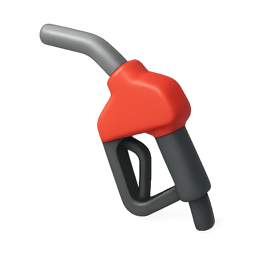 Stylized 3D illustration of a fuel pump nozzle featuring a vibrant red and gray color scheme, suitable for automotive or fuel-related graphics.