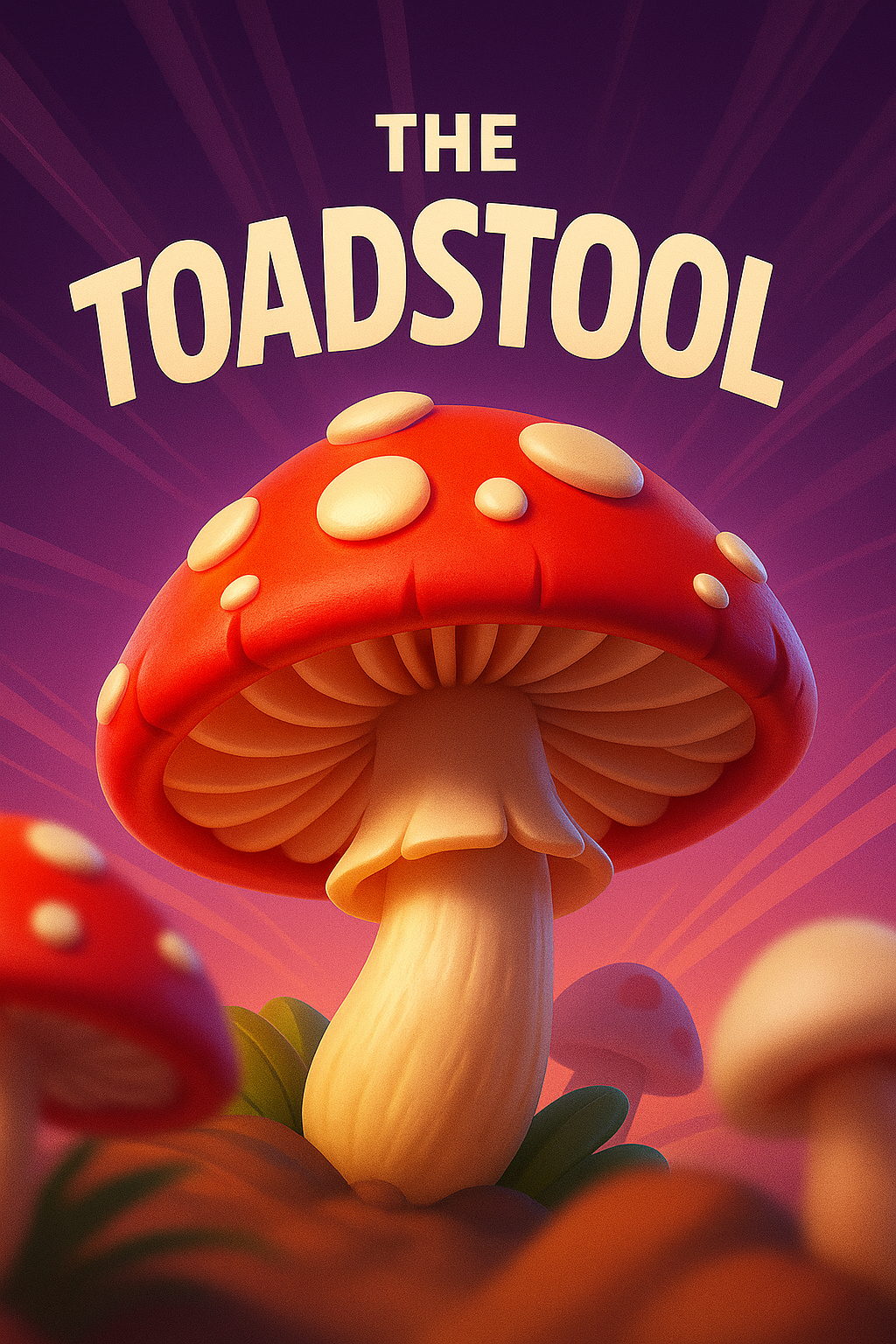 A vibrant 3D illustration of a toadstool mushroom set against a smooth gradient background. The design features dynamic lines radiating from the center, enhancing the lively aesthetic.