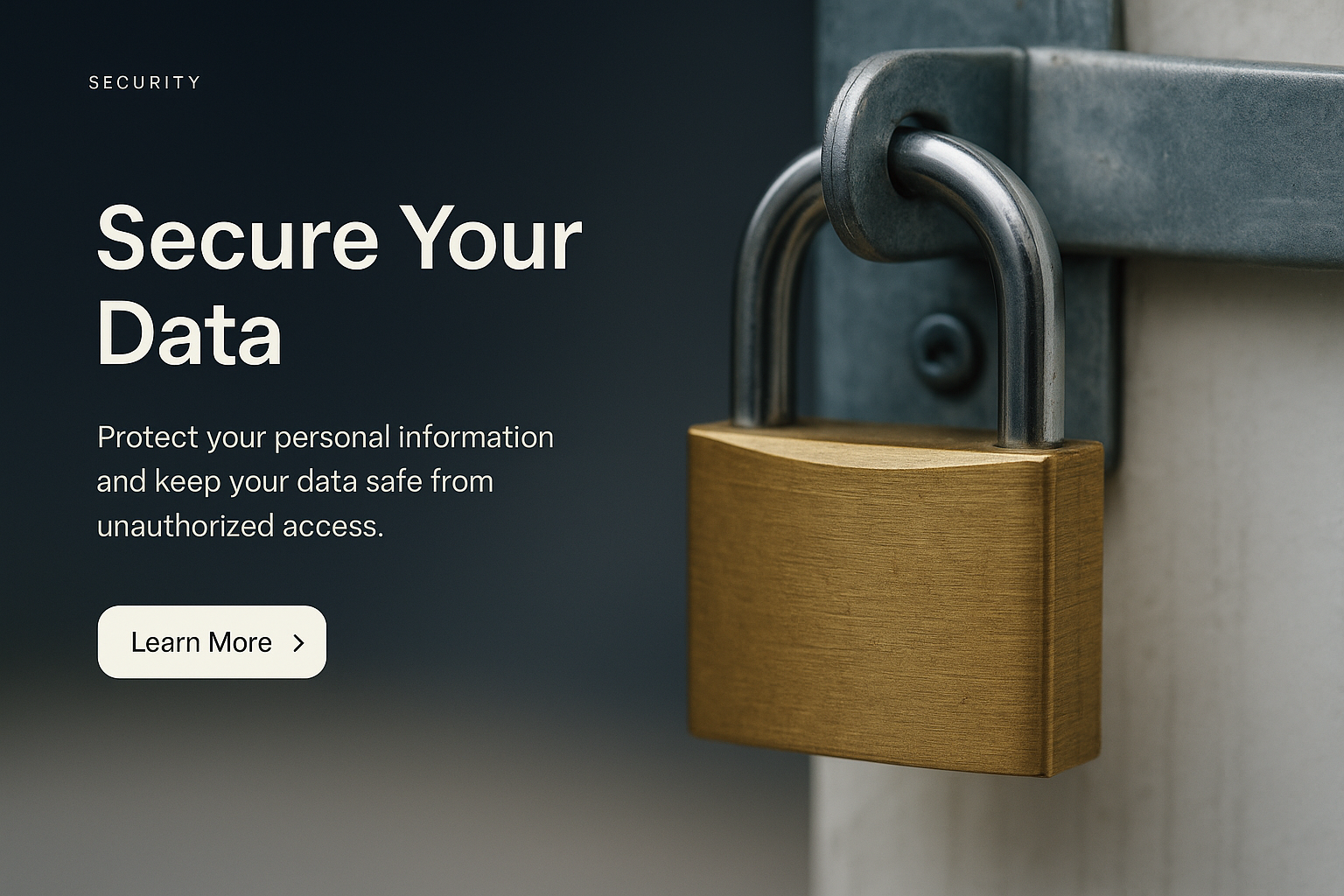 /Collection: /by davooda/Type: PNG/A visually appealing design featuring a gold padlock, emphasizing data security. The layout includes a title, a brief description, and a call-to-action button, all set against a gradient background.