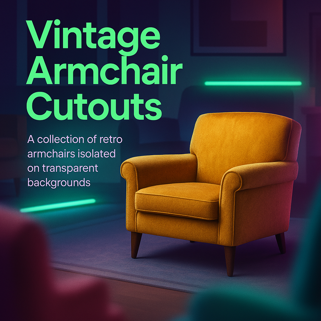Stylized graphic featuring a collection of vintage armchair cutouts on transparent backgrounds, ideal for design projects and marketing materials.