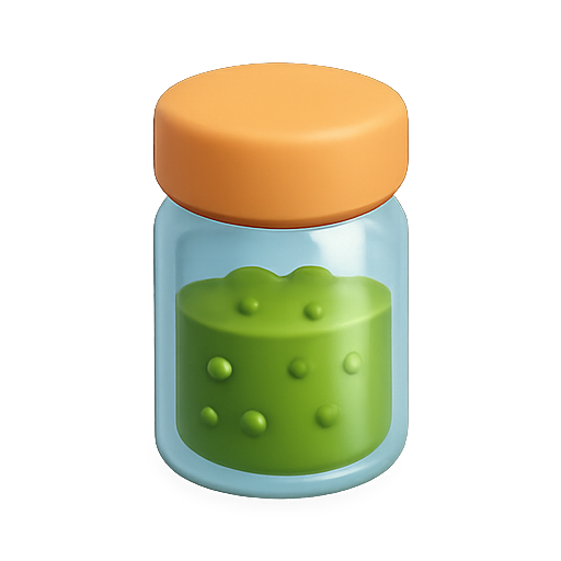 A modern illustration of a glass jar containing a vibrant green substance, featuring a playful design with a contrasting orange lid. Ideal for product mockups or creative projects.