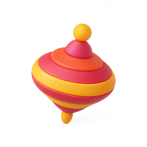 A playful and colorful spinning top toy featuring bold stripes and a fun design, perfect for children's playtime and educational activities.