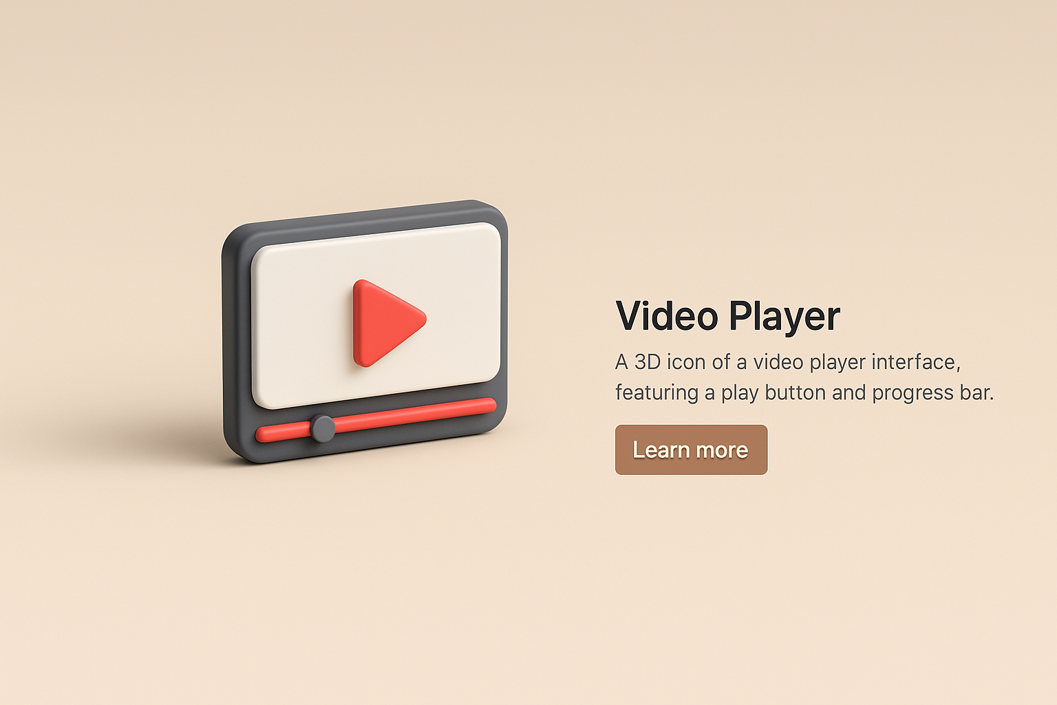 /Collection: /by davooda/Type: PNG/A detailed 3D illustration of a video player icon with a play button and progress bar, set against a smooth gradient background. The design is cohesive and visually appealing.