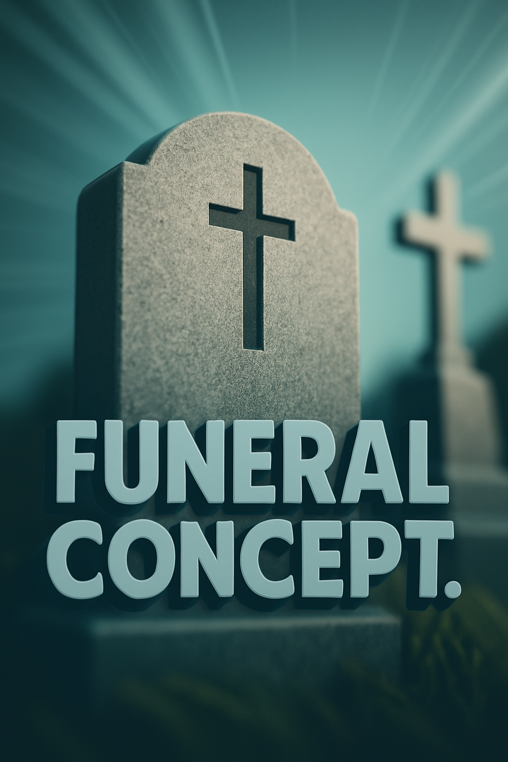 /Collection: /by davooda/Type: PNG/A visually striking representation of a Catholic cemetery featuring a grave marker and cross. The background is softly blurred, enhancing the serene atmosphere, while dynamic lines radiate from the center.
