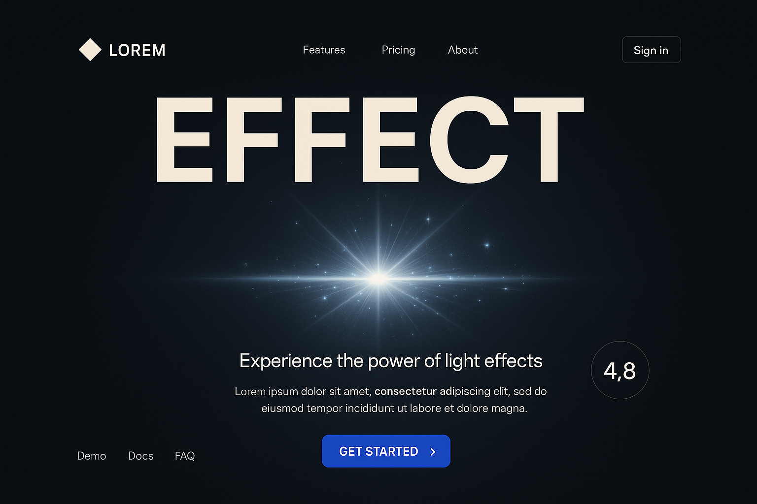 Modern Landing Page with Bold Typography and Light Effects