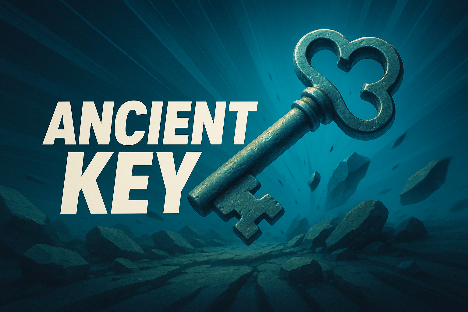 Dynamic Illustration of an Ancient Key with Vibrant Background