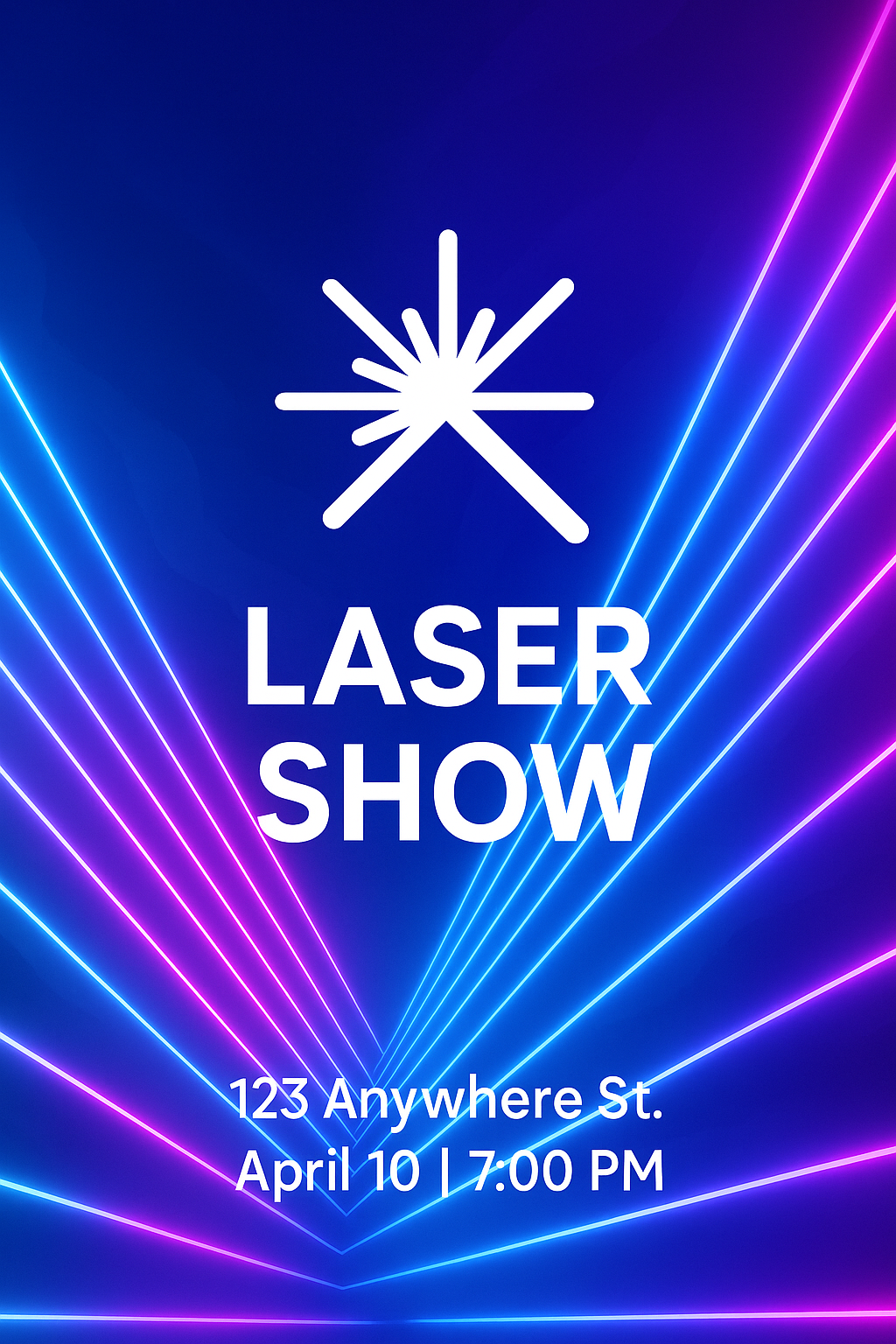 Dynamic event poster featuring colorful laser beams and modern typography, ideal for promoting entertainment events and shows.