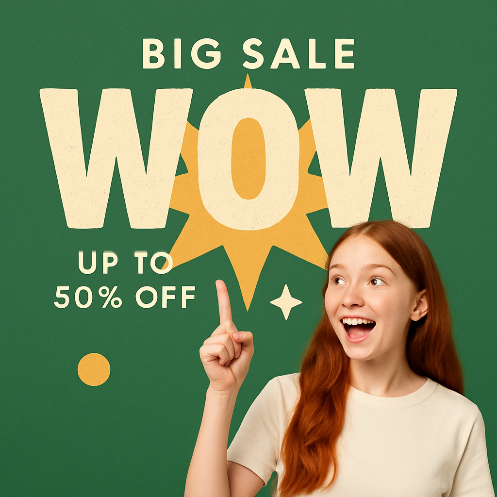 Promotional Sales Graphic Featuring 50% Discount Announcement