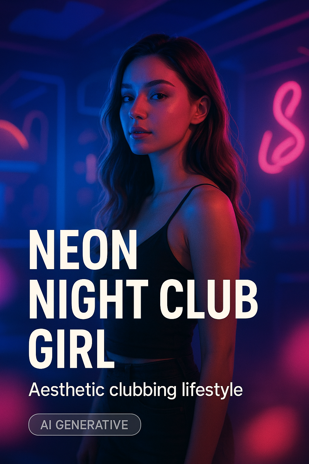 Vibrant image featuring a young woman in a nightclub setting, illuminated by neon lights. The aesthetic captures the nightlife vibe and is ideal for social media or lifestyle branding.