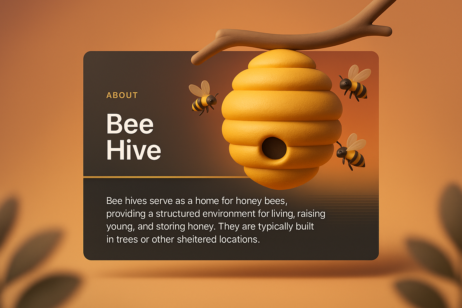 A visually appealing 3D illustration of a bee hive with bees, featuring an integrated informative block detailing its function and significance.