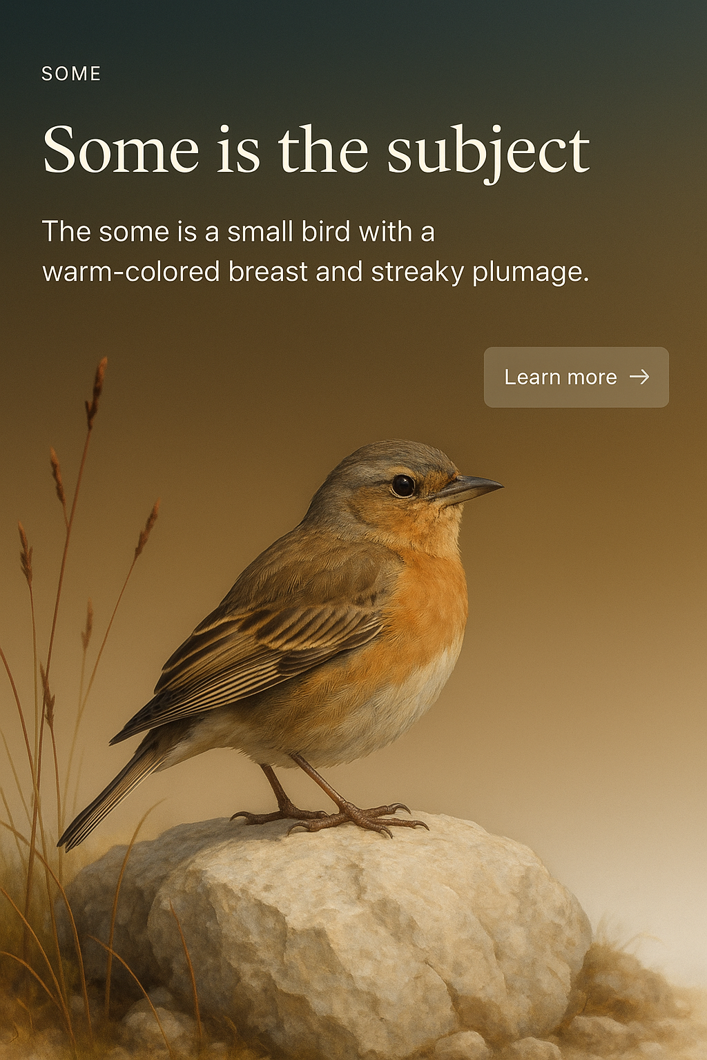 /Collection: /by davooda/Type: PNG/The image showcases a small bird with a warm-colored breast, set against a gradient background. It includes a concise label, a short title, and a text block with a call-to-action button.