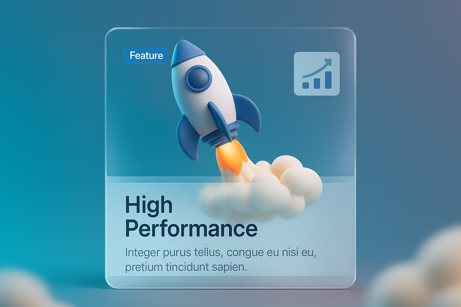 /Collection: /by davooda/Type: PNG/A dynamic 3D illustration of a space rocket launching with smoke, presented on a transparent background. The design features a high-performance label and a smooth gradient backdrop.
