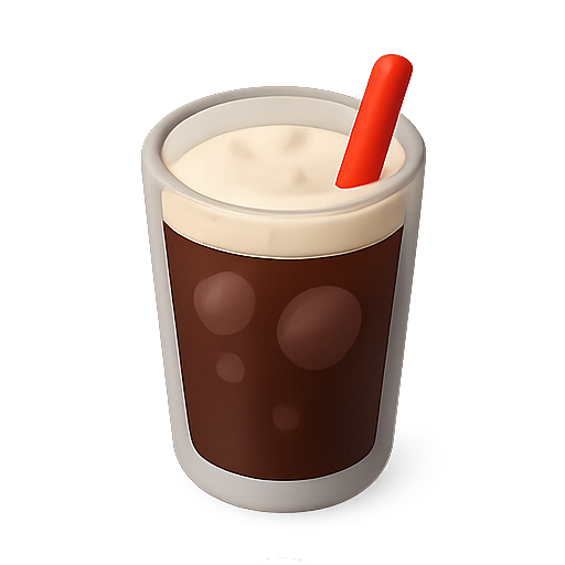 A graphic representation of a drink cup filled with a dark beverage and topped with foam, featuring a red straw. Ideal for casual or playful contexts.
