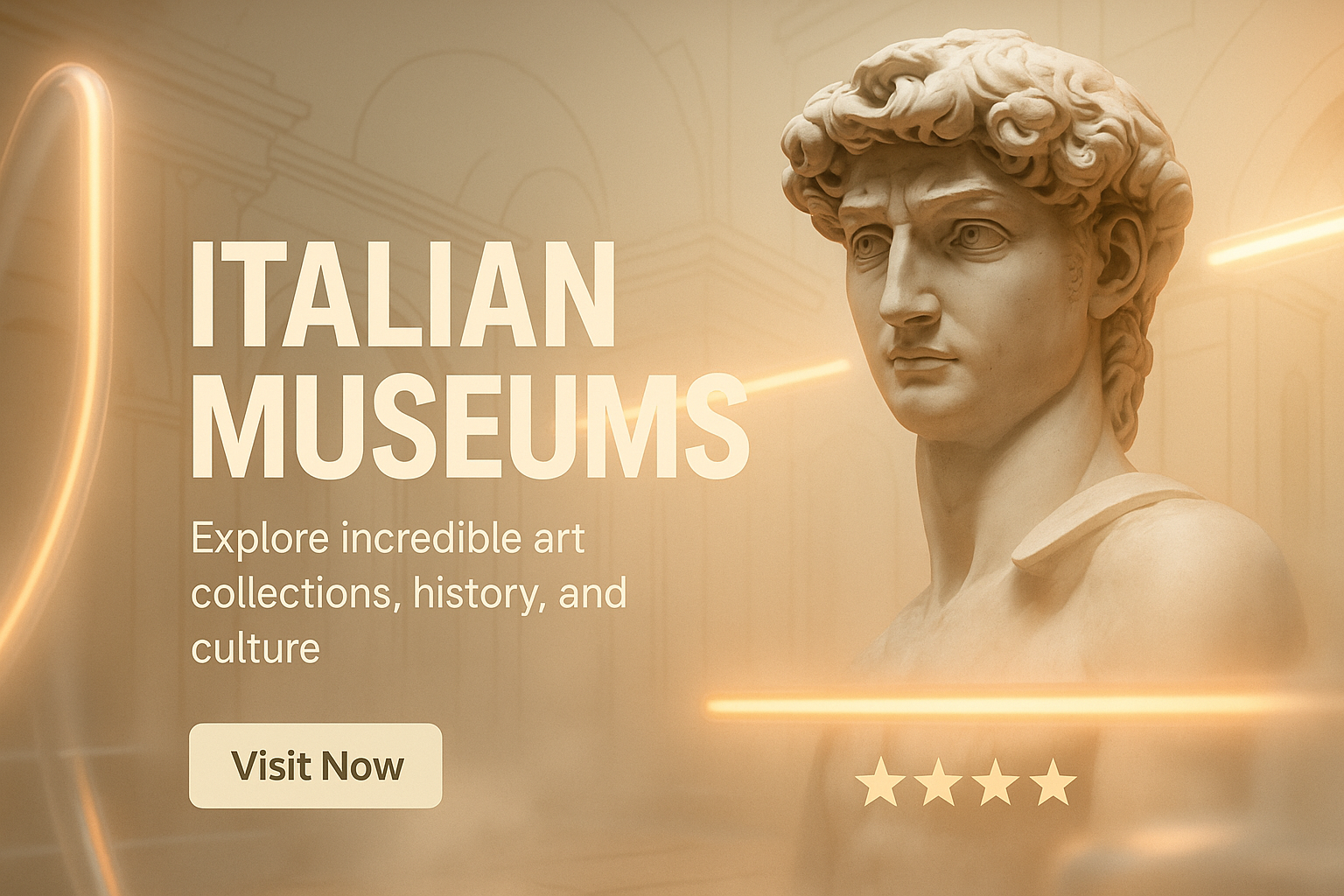 Promotional Banner for Italian Museums Featuring Art and Culture