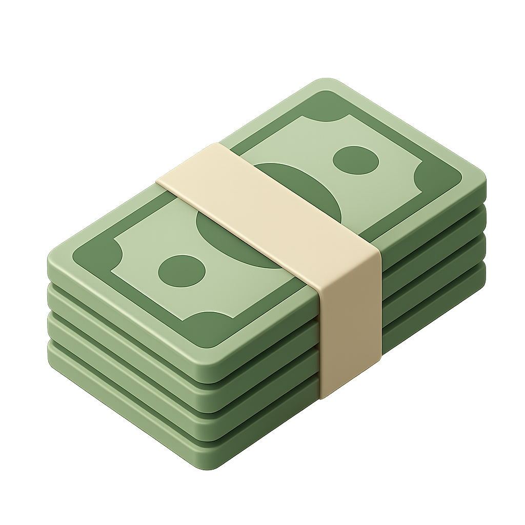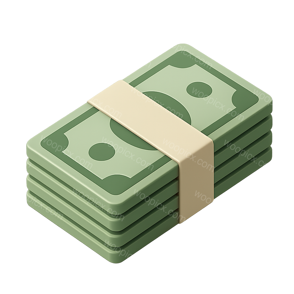 Stylized 3D Stack of Banknotes Icon with Transparent Background
