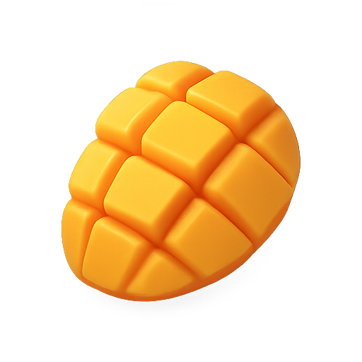 A vibrant 3D representation of a mango, showcasing its textured surface and bright yellow color. Ideal for food-related graphics, marketing, or educational materials.