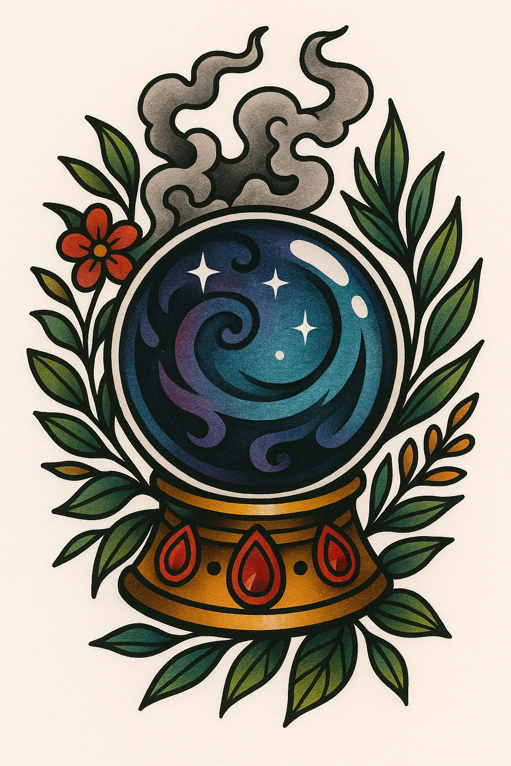 Illustrative Design Featuring a Crystal Ball with Decorative Elements
