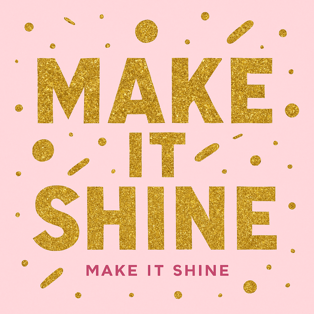 Vibrant graphic featuring bold, glittery typography on a soft pink background, perfect for motivational content and social media posts.