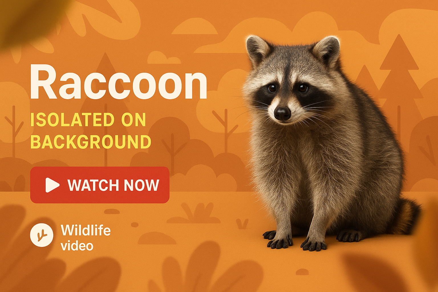 /Collection: /by davooda/Type: PNG/Engaging promotional thumbnail showcasing a raccoon against an orange, nature-inspired background. Ideal for wildlife video content, designed to attract viewers with its playful imagery.