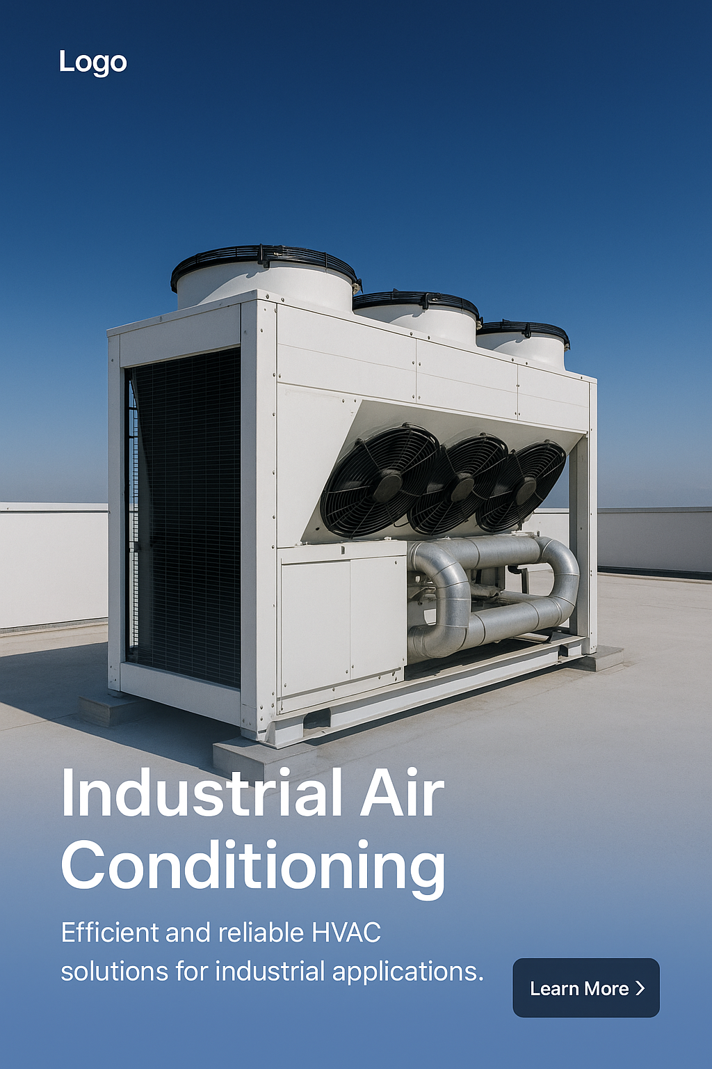 A robust industrial air conditioning system sits prominently on a rooftop against a clear blue sky, showcasing its intricate design and functionality.