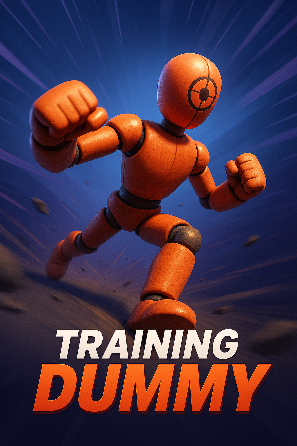 A vibrant 3D illustration of a training dummy in a dynamic pose, set against a gradient background. The figure is depicted in motion, emphasizing its athletic form and energy.