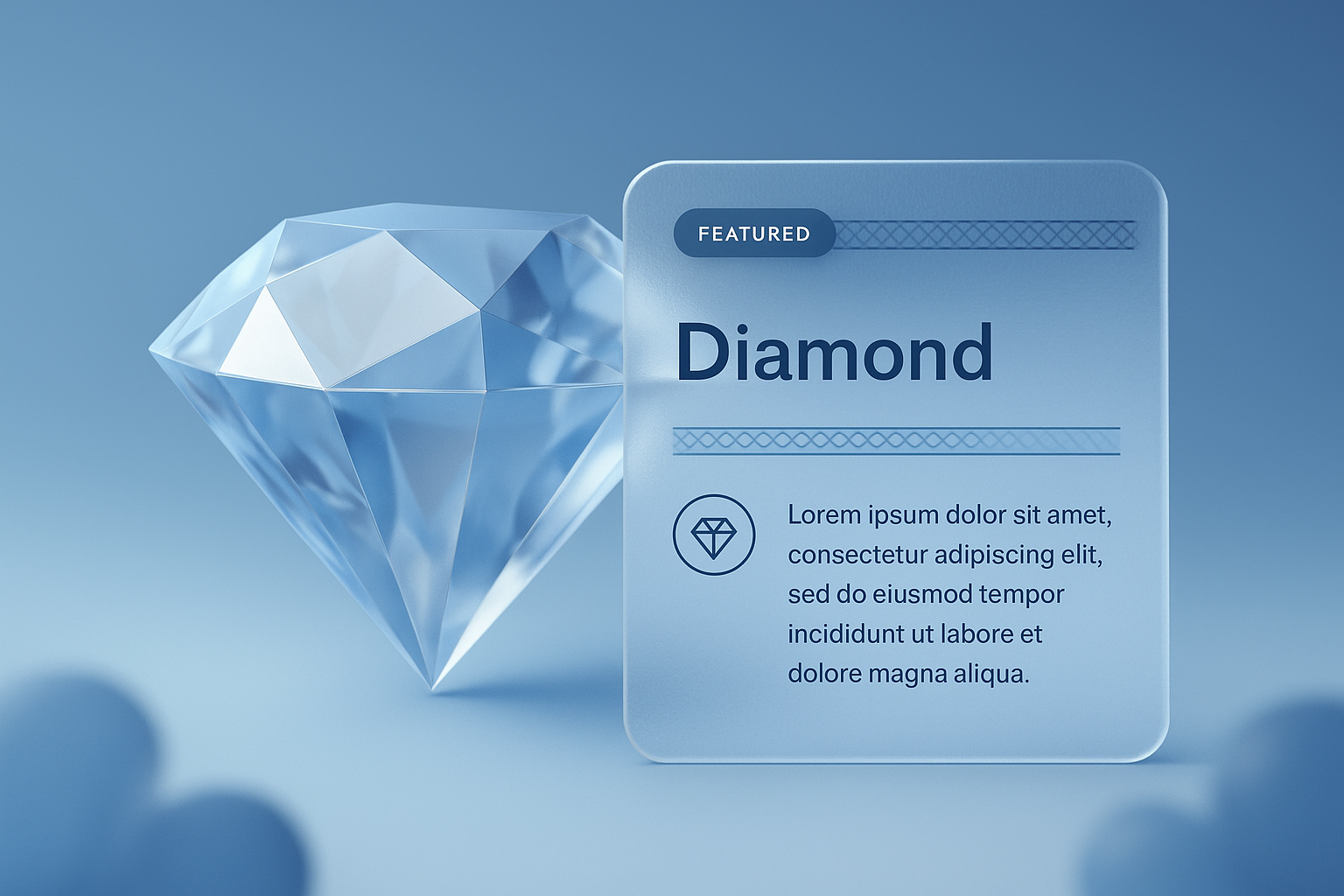 /Collection: /by davooda/Type: PNG/A stunning 3D illustration of a diamond alongside a transparent information block. The design features a smooth gradient background and a modern layout for text and graphics.