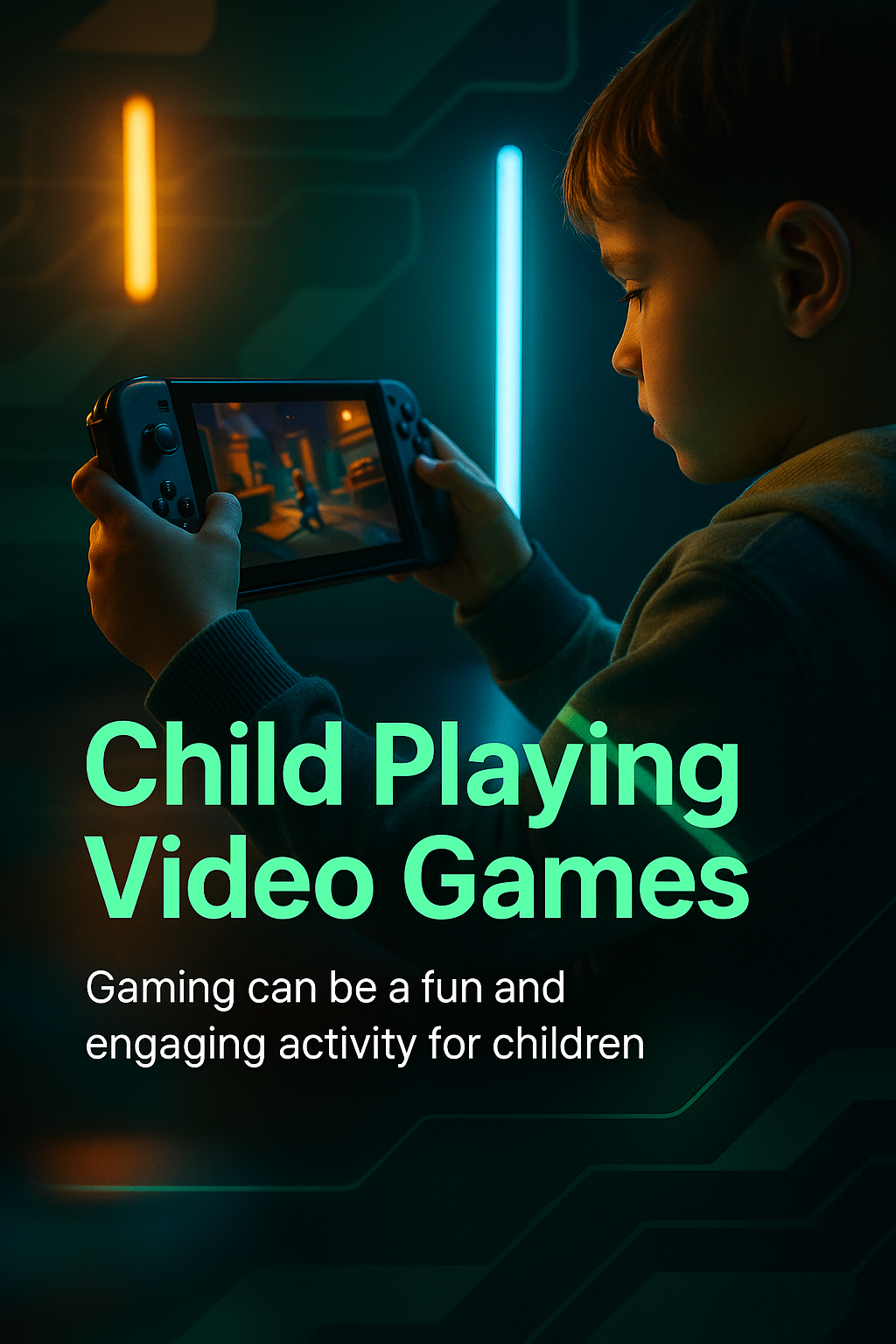 Child Engaged in Video Gaming with Neon Aesthetic