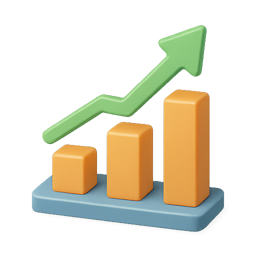 A stylized 3D illustration of a bar chart with an upward trend arrow, showcasing data growth. Ideal for business presentations and analytics.