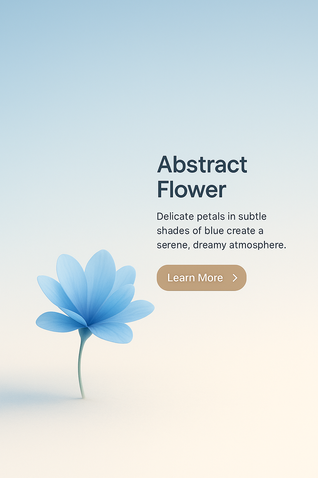 /Collection: /by davooda/Type: PNG/This image features a delicate blue flower set against a smooth gradient background. The design includes a small label, a concise title, and a call-to-action button, all harmonizing with the serene atmosphere.