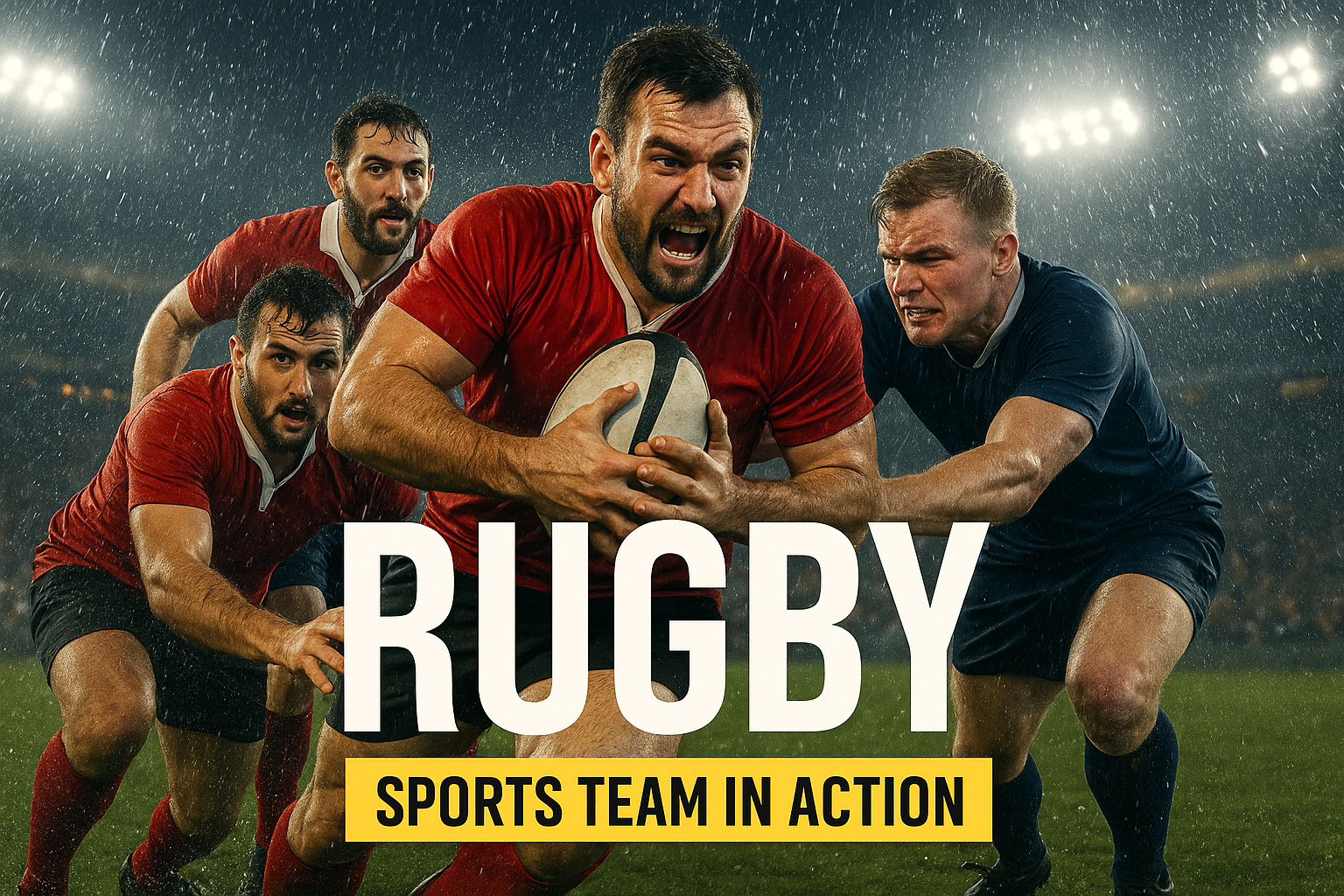 Dynamic Rugby Action Shot Featuring Intense Team Play