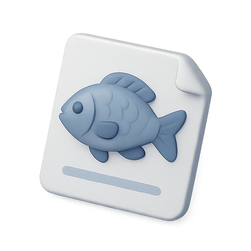 A modern, stylized fish icon featuring a soft blue color scheme and 3D design elements, suitable for app interfaces or educational materials.