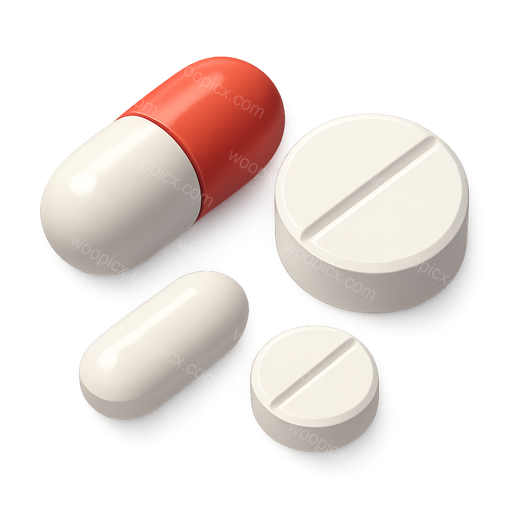 /Premium/Collection: /by davooda/Type: PNG/A visually striking collection of 3D pills and tablets in various sizes and shapes, set against a softly blurred background. The design includes a red-capped capsule and white tablets, showcasing a modern, isometric style.